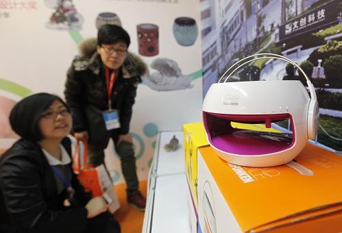3月14日,第25屆中國北京國際禮品、贈品及家庭用品展覽會在北京國際展覽中心開幕。這是觀眾在參觀太陽能藍牙音箱。本屆展會為期4天,展出面積4萬平方米,吸引約1200家企業(yè)參展。展品包括工藝品、紀念收藏品、商務禮品、文化用品和家居用品等。