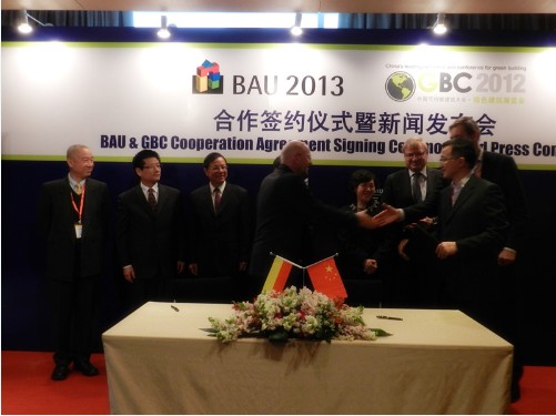 2012年3月26日,VNU亞洲展覽集團(tuán)-上海萬耀企龍展覽有限公司與德國慕尼黑展覽集團(tuán)MMG全資子公司慕尼黑展覽(上海)有限公司在證大喜馬拉雅中心正式簽訂合作協(xié)議。自2012年起,慕尼黑展覽公司將全面助力中國可持續(xù)建筑大會(huì)綠色建筑展覽會(huì)(Green Building China-GBC)。德國慕尼黑展覽公司主辦的BAU是全球最重要的國際建筑和建設(shè)行業(yè)展覽會(huì)。2011年剛結(jié)束的活動(dòng)吸引了超過2,000家企業(yè)參與,展示一流的建筑產(chǎn)品與服務(wù),吸引近240,000專業(yè)觀眾參觀。