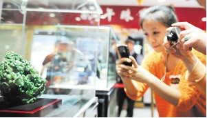 昨日,湖南最大珠寶玉器市場正式開業(yè),長沙首屆珠寶玉器節(jié)同時啟幕?;顒蝇F場一座標價2.1億元的翡翠擺件成為全場最大的“明星”,引來不少市民拍照合影。