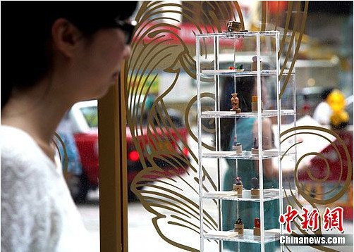 5月4日,香港市民在合和中心廣場(chǎng)細(xì)心觀賞“紅酒酒塞雕塑作品”展覽。當(dāng)天,為期16天的“法國五月美食節(jié)”開幕,為香港市民呈現(xiàn)法式的美味佳肴外更設(shè)置酒塞雕塑作品增添趣味。(來源:中新網(wǎng))