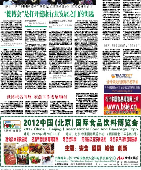 中國(guó)食品報(bào)是本屆展會(huì)的全程推廣機(jī)構(gòu),6月4日第一期關(guān)于中國(guó)食品飲料展覽會(huì)的全新面貌已展現(xiàn)會(huì)展經(jīng)濟(jì)???。第二期的報(bào)刊將在6月18日出版,版面內(nèi)容主要集中在展會(huì)的新聞信息及參展客戶的品牌推廣方面,希望已經(jīng)報(bào)名的參展客戶,及時(shí)提交您的產(chǎn)品信息到組委會(huì)新聞編輯部,以便做好您展前的宣傳工作。沒有的報(bào)名的客戶,也希望您能夠多多關(guān)注北京食品飲料博覽會(huì)暨特色飲料專題展,以及中國(guó)食品報(bào)會(huì)展經(jīng)濟(jì)版的相關(guān)信息內(nèi)容,我們希望通過食品報(bào)的權(quán)力推廣,能夠給您帶來更好的宣傳,也能給您這次參展帶來更好的效益。