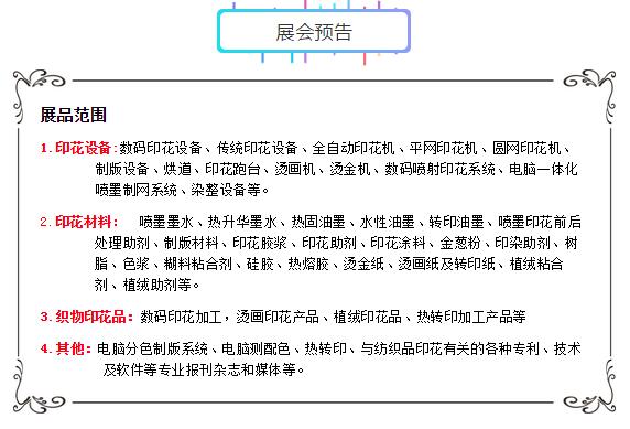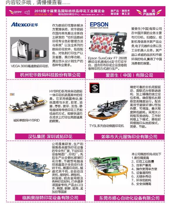 “2018第十屆青島國際紡織品印花工業(yè)展覽會”即將開展,我們整理了第一波“新產(chǎn)品·新技術(shù)·新設(shè)備·新工藝”的信息播報給你們,后續(xù)更多的產(chǎn)品資訊推送,請做好準備!