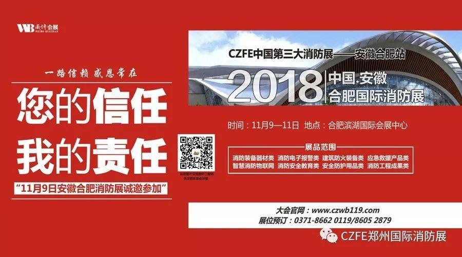 2018年11月9-11日,威博會展|CZFE鄭州國際消防展組委會主辦的安徽(合肥)國際消防設備技術(shù)交流展覽會將在合肥濱湖國際會展中心(5號館)舉辦,規(guī)模10000平米、參展企業(yè)230家、共設立標準展位500個,特裝展位50個。據(jù)悉,這是安徽地區(qū)近十年來首次舉辦的大規(guī)模,專業(yè)化消防展會,企業(yè)參展熱情超過預期目的!