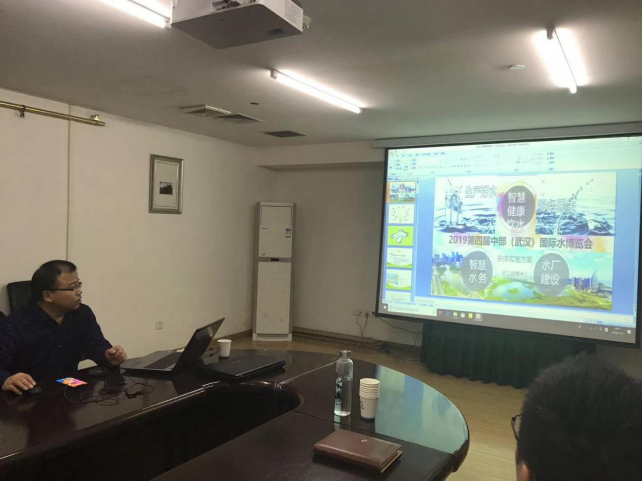 其次由水博會組委會項目運營總監(jiān)胡兵為參加會議的相關(guān)領(lǐng)導(dǎo)介紹展示2019中國(武漢)國際水博覽會項目實施方案的講解,詳見下圖