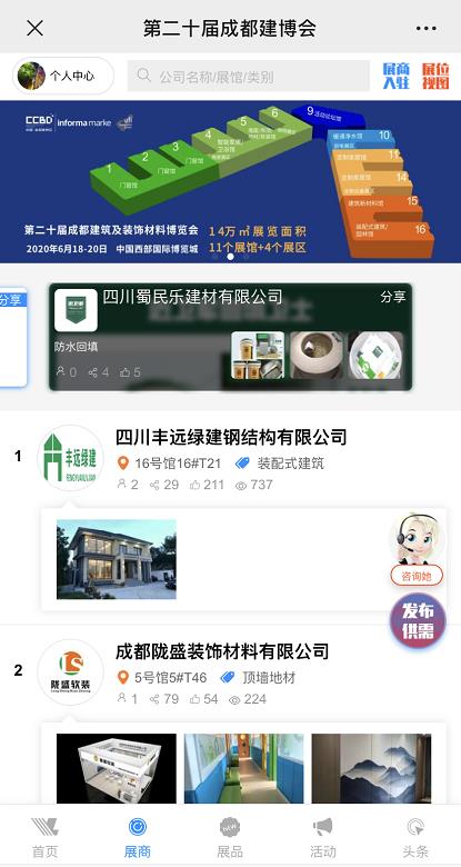 隨著信息技術(shù)的發(fā)展,成都建博會將線上線下雙線并舉的思路為引領(lǐng),目前全新打造的大家居建裝產(chǎn)品對接加盟云平臺——“成都建博會線上展會”已上線,平臺可滿足行業(yè)商家網(wǎng)上推廣、新品發(fā)布、商家宣傳、發(fā)布供需信息、線上展覽、商貿(mào)配對、客戶約見等訴求,實(shí)現(xiàn)線上展會海量曝光蓄客,線下展臺人氣爆棚,打造中西部家居建材行業(yè)首個線上+線下高效務(wù)實(shí)的貿(mào)易展會平臺。