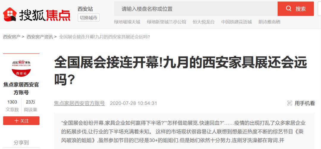 每年展會(huì)期間,《中國(guó)家具報(bào)道》、《深圳家具報(bào)》、《雅居》、《家居世界》、《華東家具》等60+專業(yè)媒體都會(huì)參與其中。另一方面,展會(huì)借由本地媒體《陜西日?qǐng)?bào)》、交通916、公交廣告、LED車體廣告和電視臺(tái)等開(kāi)展了廣泛密集式的宣傳報(bào)道,并還與百度、360搜索推廣、騰訊、頭條、行業(yè)庫(kù)短信/郵件通知等新媒體及數(shù)據(jù)渠道建立了緊密合作。