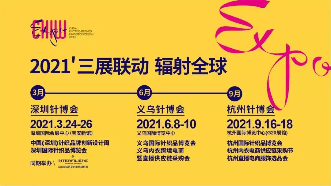 2021年6月8-10日,「2021浙江紡博會」將以“科技創(chuàng)新推動多元跨界,智能紡織穿出健康未來“為主題,覆蓋針織全產(chǎn)業(yè)鏈,前瞻健康紡織的趨勢,洞悉智能織造的未來,幫助企業(yè)掌握最新的行業(yè)動態(tài),激勵紡織行業(yè)創(chuàng)新發(fā)展。浙江紡博會,期待您的參與!