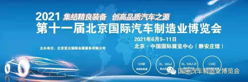 2021北京國際汽車制博會(huì),在各方鼎立支持下,在組委會(huì)積極籌備下,將于2021年6月9日-11日在北京.中國國際展覽中心(靜安莊)館耀世開啟!
