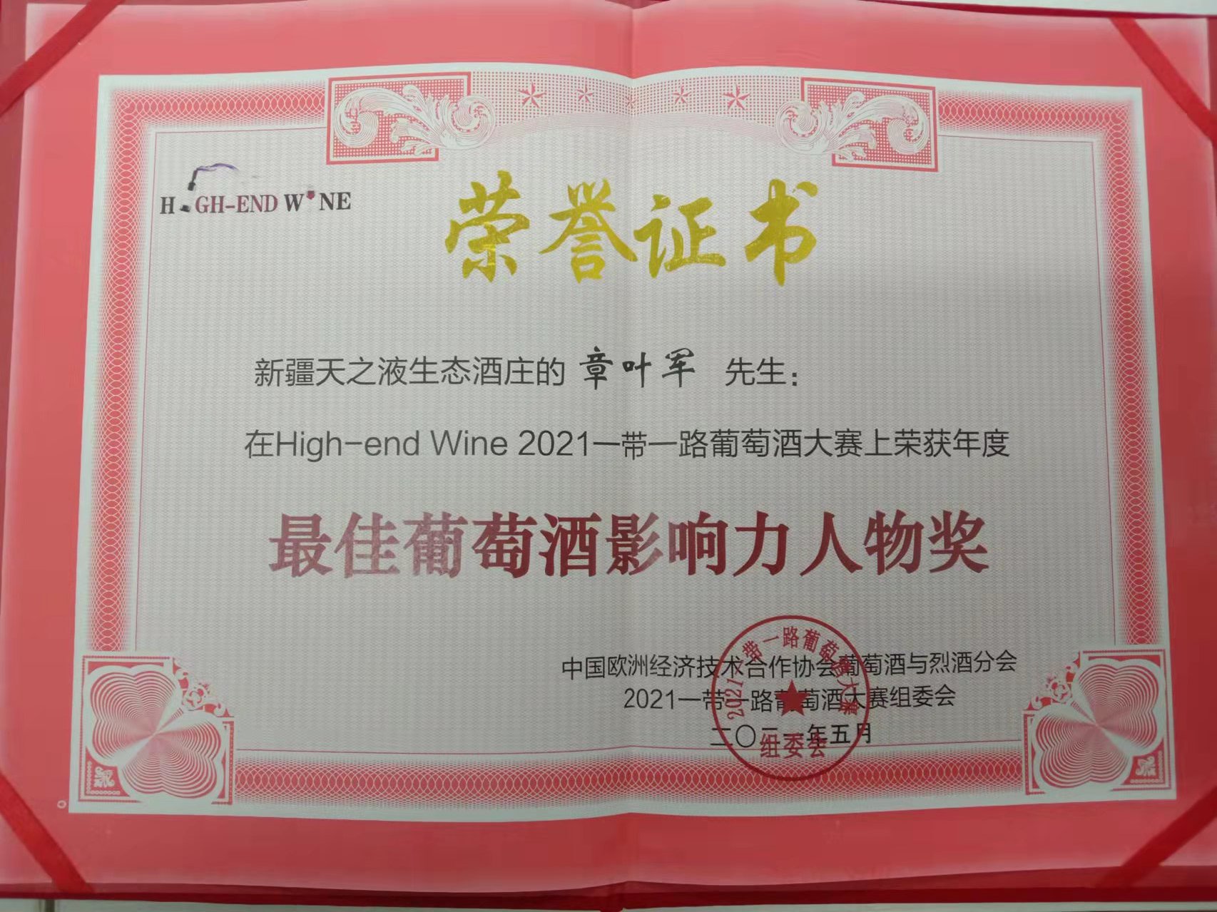l High-end Wine 2022——年度最佳葡萄酒影響力人物獎(jiǎng)(僅限5名) 如:天之液·章葉軍