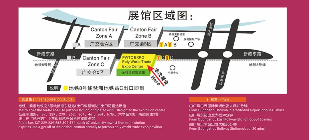 或者導(dǎo)航“保利世貿(mào)博覽館”“琶洲地鐵站C出口”均可