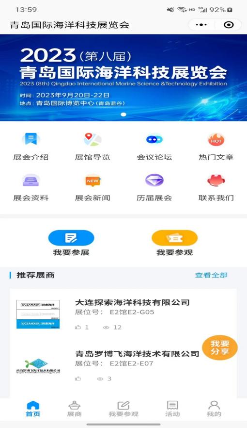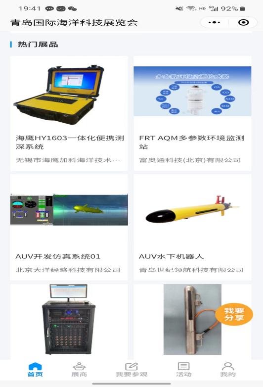 您可以通過展商秀平臺提前預覽2023(第八屆)青島國際海洋科技展覽會參展商、展品、主題論壇、同期活動等展會相關內(nèi)容,實時掌握青島海科展咨詢、預約洽談,報名參會!