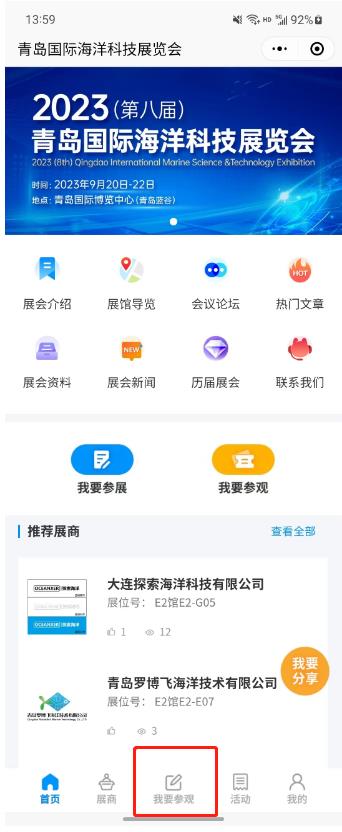 點擊展商秀底邊欄中央的【我要參會】按鈕,直接報名參加青島??普?,避免現(xiàn)場登記注冊麻煩。提前預登記的觀眾還可以享有免費午餐等展會特權!