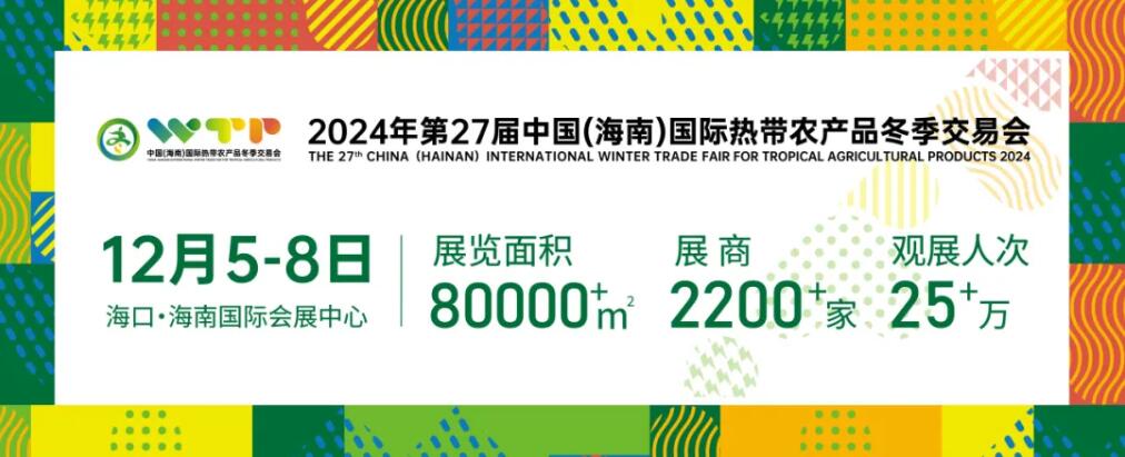2024年第27屆中國(海南)國際熱帶農(nóng)產(chǎn)品冬季交易會(以下簡稱“冬交會”)將于12月5-8日在海南國際會展中心舉辦。