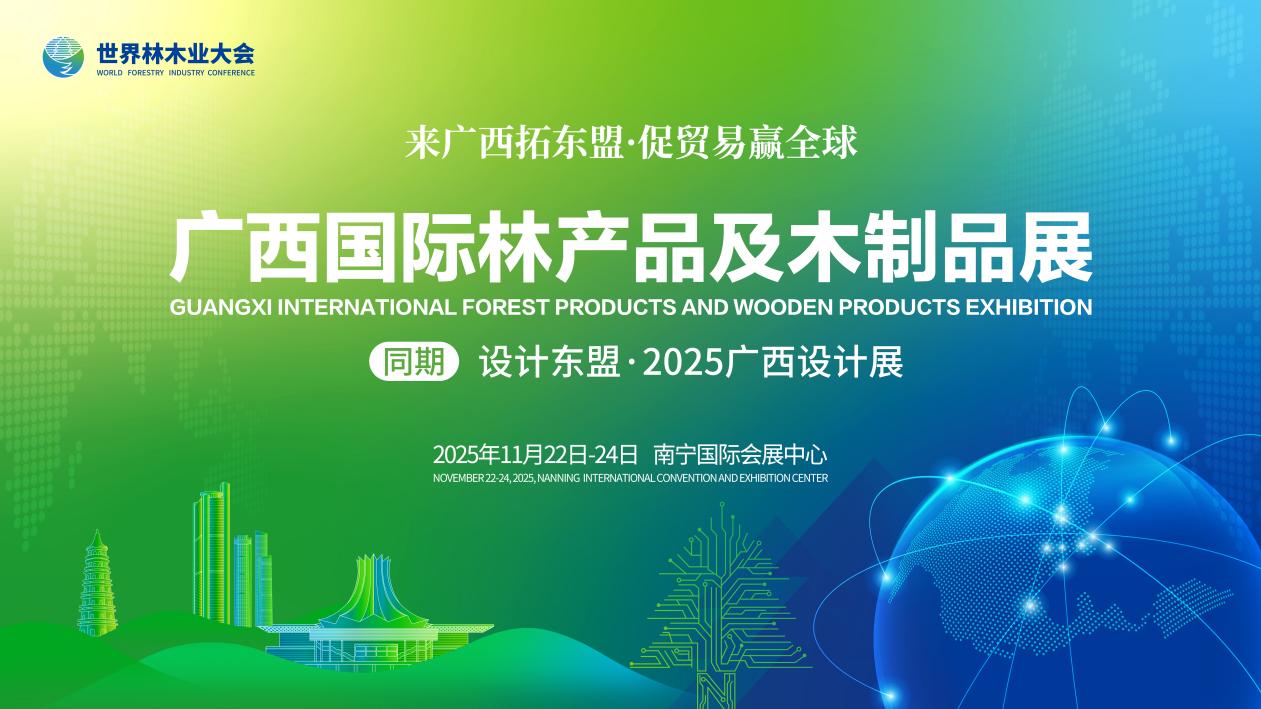 為全面展示全球林木業(yè)領(lǐng)域的前沿科技成果、創(chuàng)新實踐與生態(tài)型產(chǎn)品矩陣,打造國際化、專業(yè)化、品牌化的林產(chǎn)品及木制品展示平臺,深化國際林木業(yè)產(chǎn)業(yè)協(xié)同發(fā)展新格局,驅(qū)動林業(yè)產(chǎn)業(yè)向綠色化、智能化、高端化方向迭代躍升,由廣西壯族自治區(qū)林業(yè)局主辦,山東福瑞德國際會展集團承辦的2025年廣西國際林產(chǎn)品及木制品展同期設(shè)計東盟?2025廣西設(shè)計展(以下簡稱廣西林木展),定于11月22日-24日在南寧國際會展中心盛大召開,展會同期將舉辦2025年世界林木業(yè)大會。